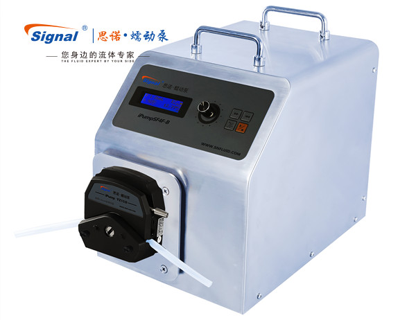 超聲波清洗消毒機工作時,需要自動定量添加和注入酶、清洗劑和消毒液。添加的清洗助劑具有用量小、添加精度高、有一定腐蝕性等特點,是普通泵所不能很好滿足的。思諾生產的一款精密蠕動泵作為一種步進電機蠕動泵,具有輸送精度高、耐腐蝕、截止閥等特殊性能,能夠很好地滿足超聲波清洗消毒機中添加清洗添加劑的特點和需求。