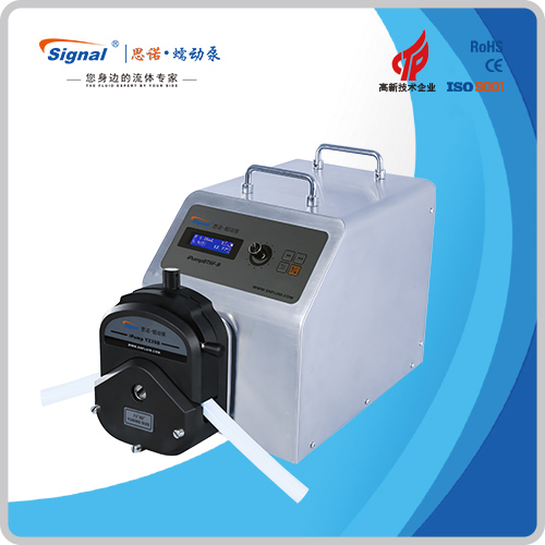 微型蠕動(dòng)泵的傳輸對(duì)于粘度比較敏感,即使我們看起來(lái)稠度沒(méi)有那么高的液體,只要拉絲,就會(huì)嚴(yán)重影響蠕動(dòng)泵的流量,因?yàn)橐后w會(huì)把軟管內(nèi)壁粘在一起,無(wú)法彈起,比如蠕動(dòng)泵傳輸蜂蜜的話,無(wú)論多大的泵,流量都會(huì)非常小,使用價(jià)值不大。但是像類似番茄醬的這種有稠度但不拉絲的液體來(lái)說(shuō),分配型蠕動(dòng)泵是可以傳輸?shù)模髁看笾聲?huì)有一半的衰減(不是絕D的,和管本身的材質(zhì)尺寸也有一定的關(guān)系),所以蠕動(dòng)泵傳輸類似番茄醬的液體就是具備使用價(jià)值的。